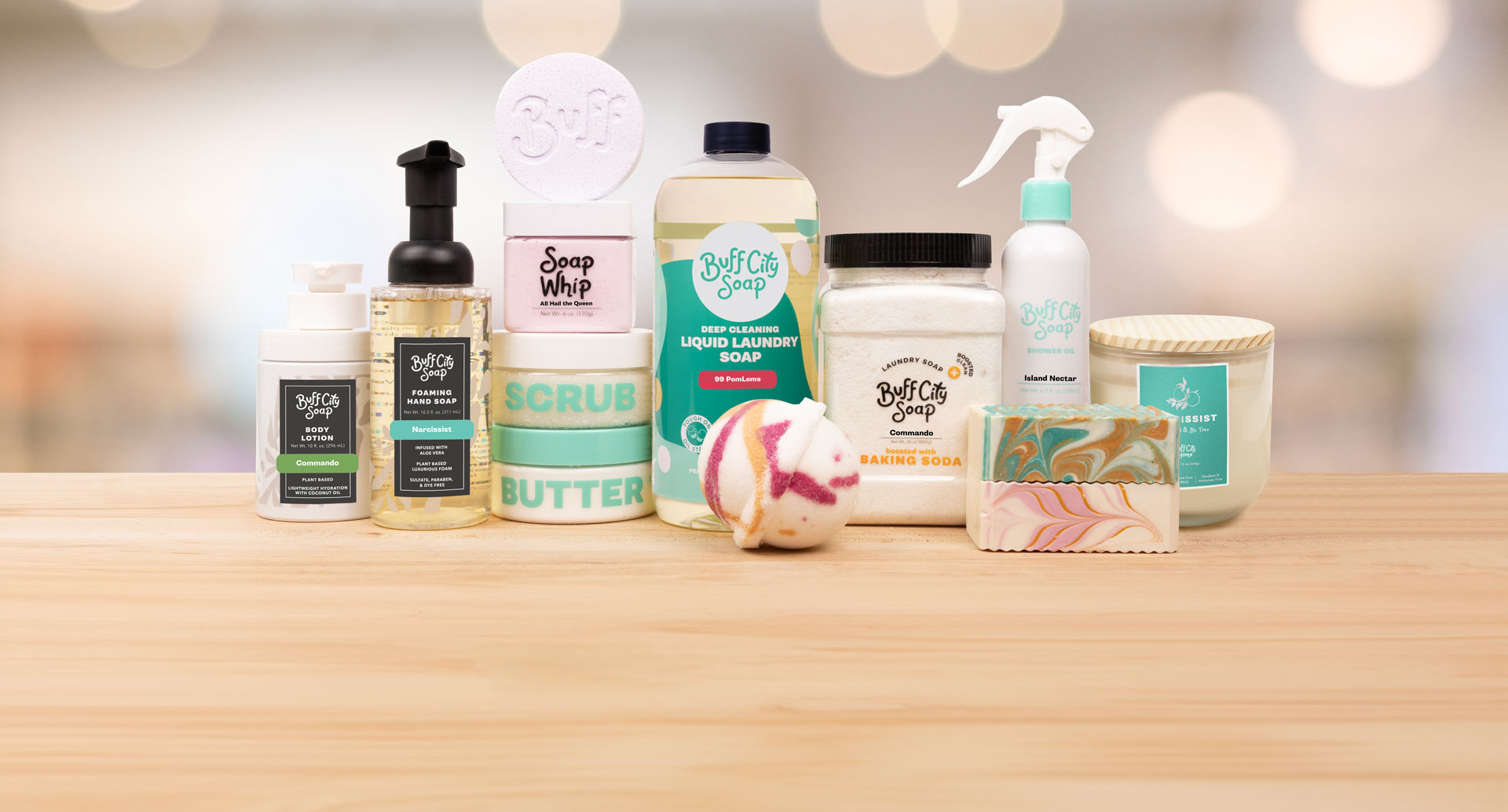 Buff City Soap of College Station & Brenham offers delightfully scented soaps, handmade daily in their local Soap Makeries! They’re on a mission to create handmade products that are free of harsh ingredients, and full of nourishing plant-based goodness. At Buff City Soap you’ll find Body Care products, Laundry Soaps, Kitchen Cleaner, Dish Soap, Candles and more!